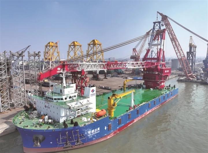 2025年2月24日拍攝的由上海振華重工南通振華重裝承建的中國電建3600噸全回轉(zhuǎn)起重船“電建志高”號(hào)。該船完工亮相,即將迎來交付節(jié)點(diǎn)。