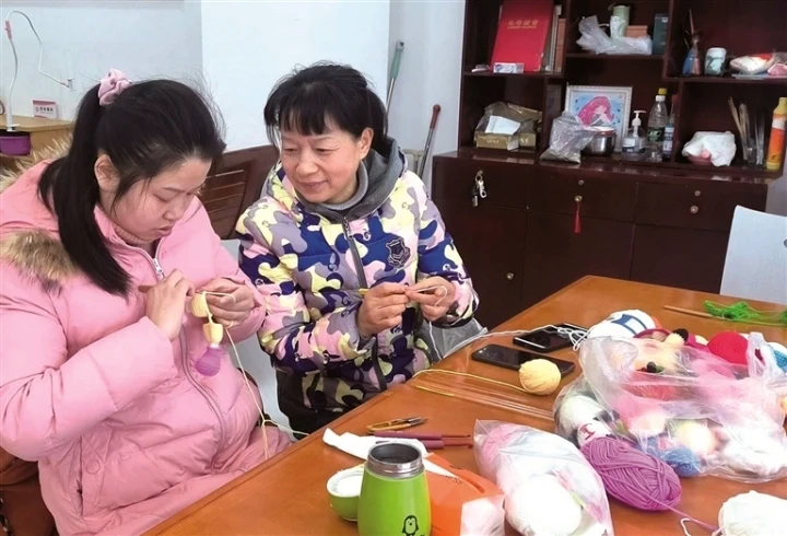 走進(jìn)崇川區(qū)唐閘鎮(zhèn)街道“殘疾人之家”,56歲的邢春梅與殘疾姐妹們正手持鉤針編織毛線,普通毛線經(jīng)過她們巧手編織變成憨態(tài)可掬的小動物、造型別致的小擺件等?!懊總€工作日,我們都會在這里做手工編織,愛心義賣也參加過好幾次?!毙洗好氛f。