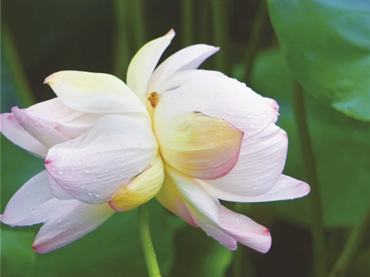 昨日清晨,濠河風(fēng)景區(qū)啟秀荷塘內(nèi),兩株罕見的并蒂蓮悄然綻放(上圖,李曉燕攝),實屬難得。紅白相間的花瓣亭亭玉立,與翠綠荷葉上的晶瑩水珠相映成趣,引得眾多攝影愛好者與市民慕名駐足,共同見證這一夏日里的自然奇觀。