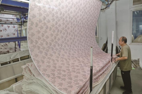 9日,工人在江蘇州際數(shù)碼印花有限公司車間忙碌。該企業(yè)通過設備更新升級,新上“數(shù)碼印花巨無霸”,實現(xiàn)上百種套色,印出的花型幾乎可以達到裸眼3D的效果,目前企業(yè)日印花布達38萬米。 記者 許叢軍攝